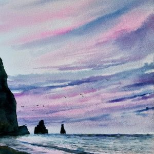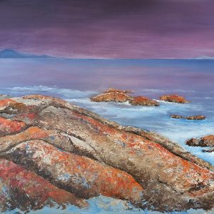 I love watching the waves as they pound, and carve away at the shoreline. I am moving away from literal illustration of seascapes to a more impressionistic style. I love to keep challenging myself in painting.