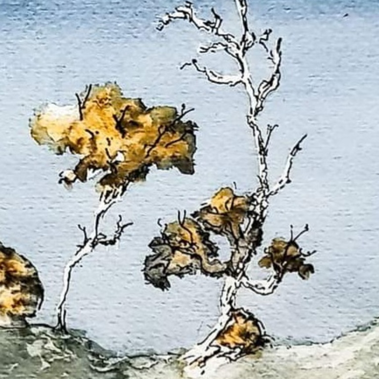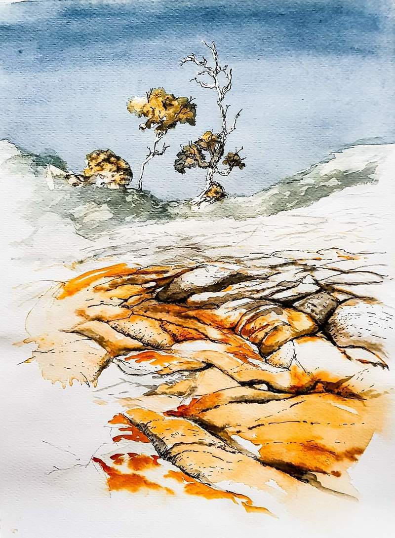 Still fascinated by the East coast shorelines of Tasmania. Loose watercolour with pen, watercolour wash.