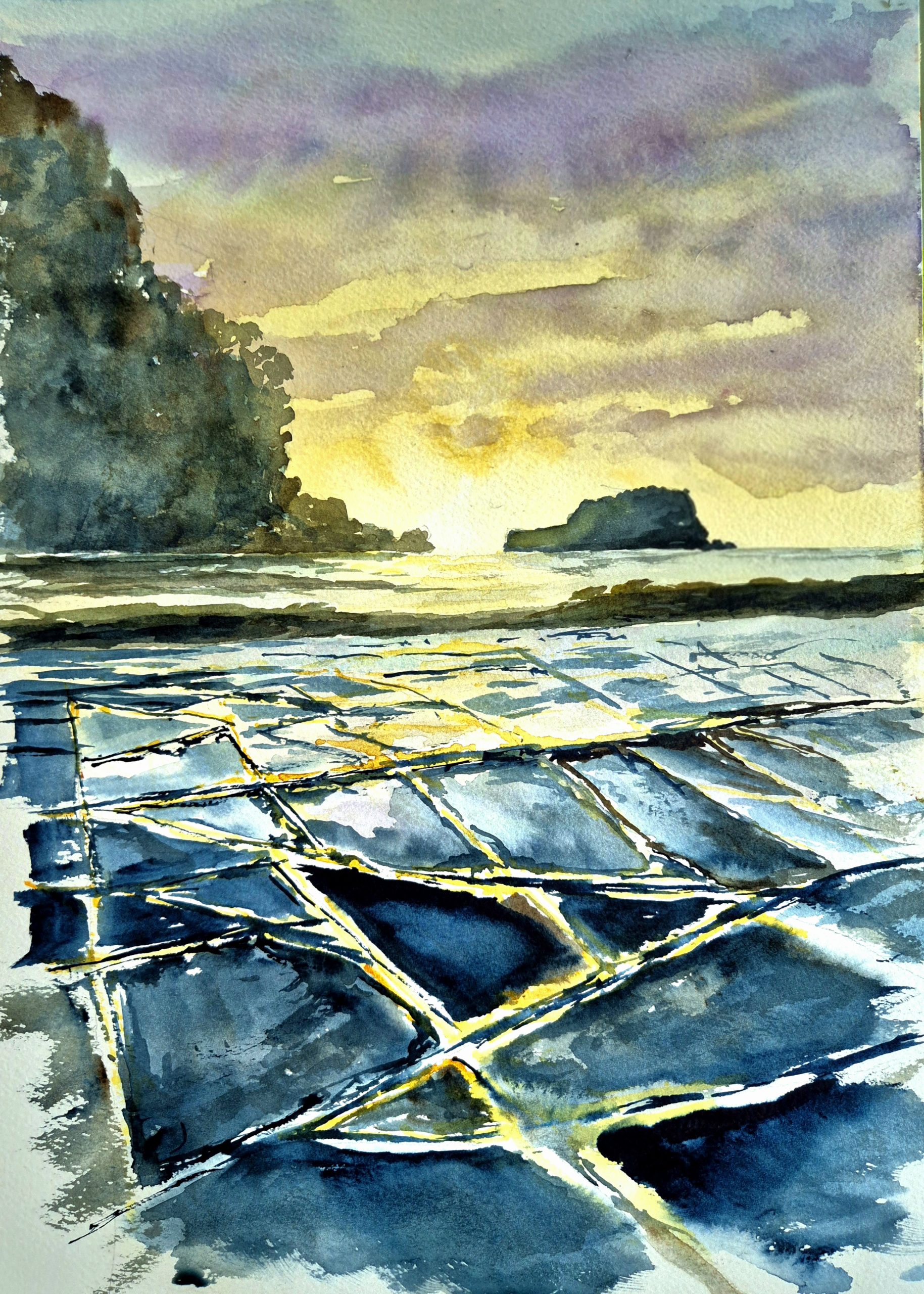 Gorgeous morning light , streaming across the spectacular Tessellated Pavement at Eaglehawk neck, Tasmania
